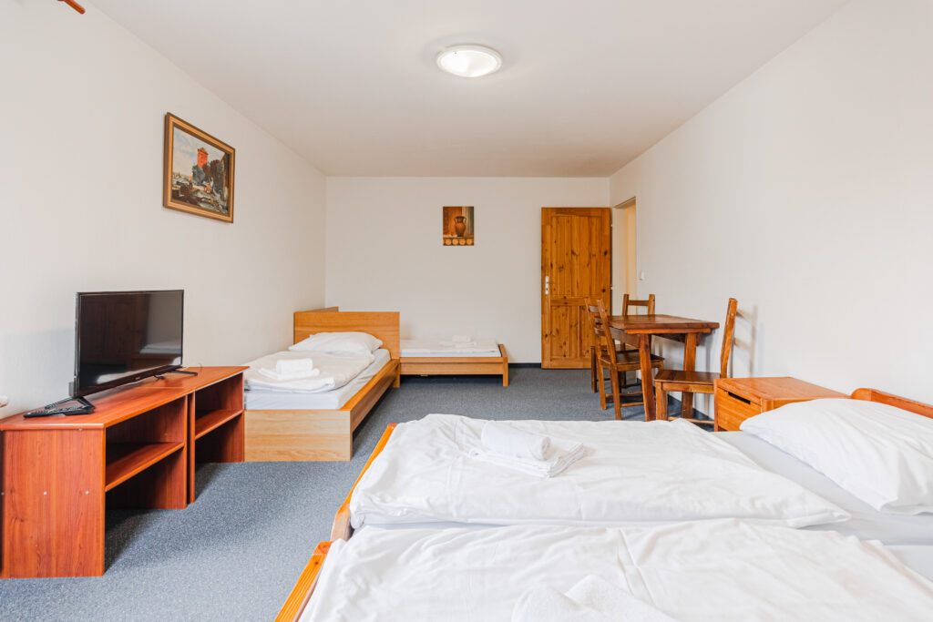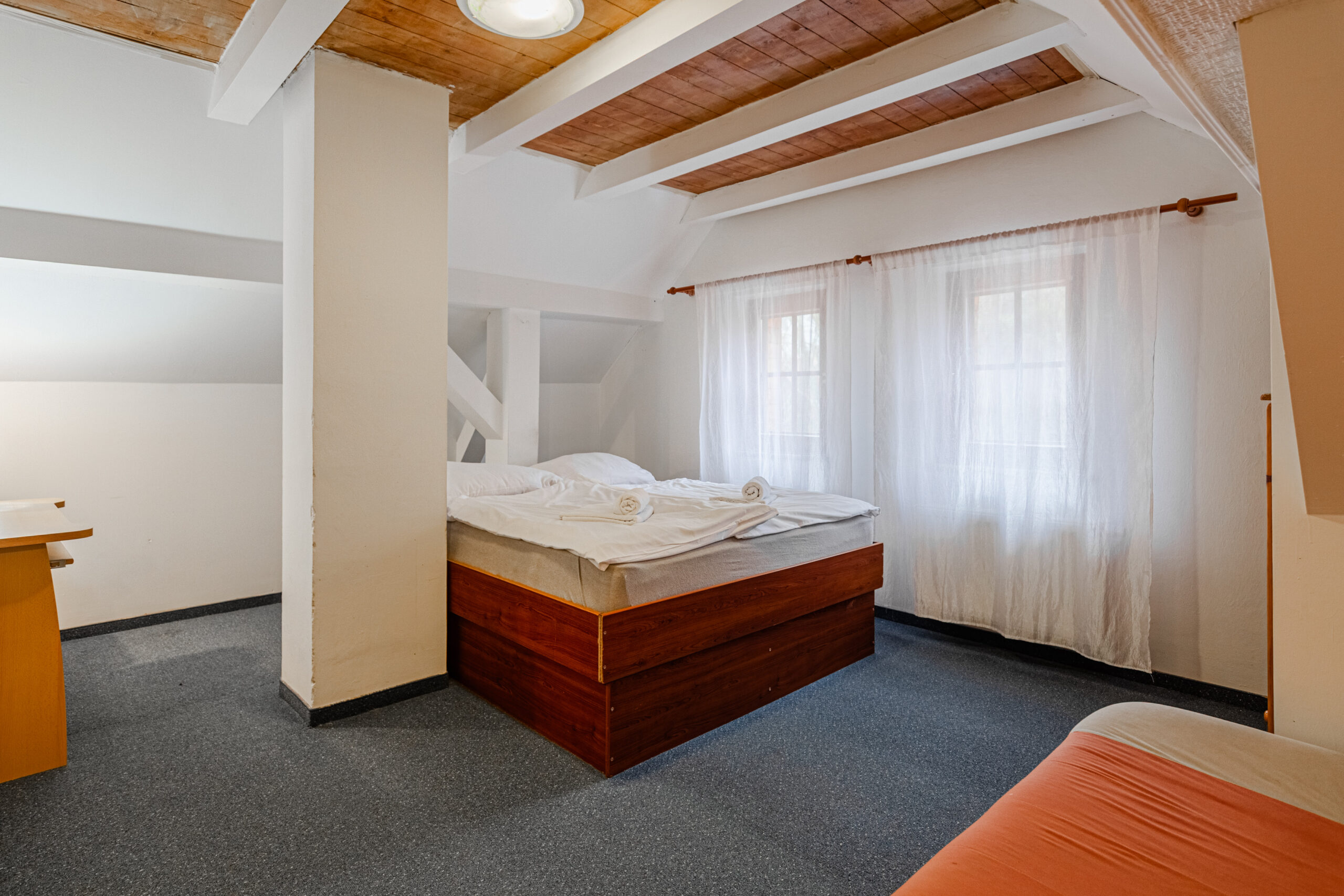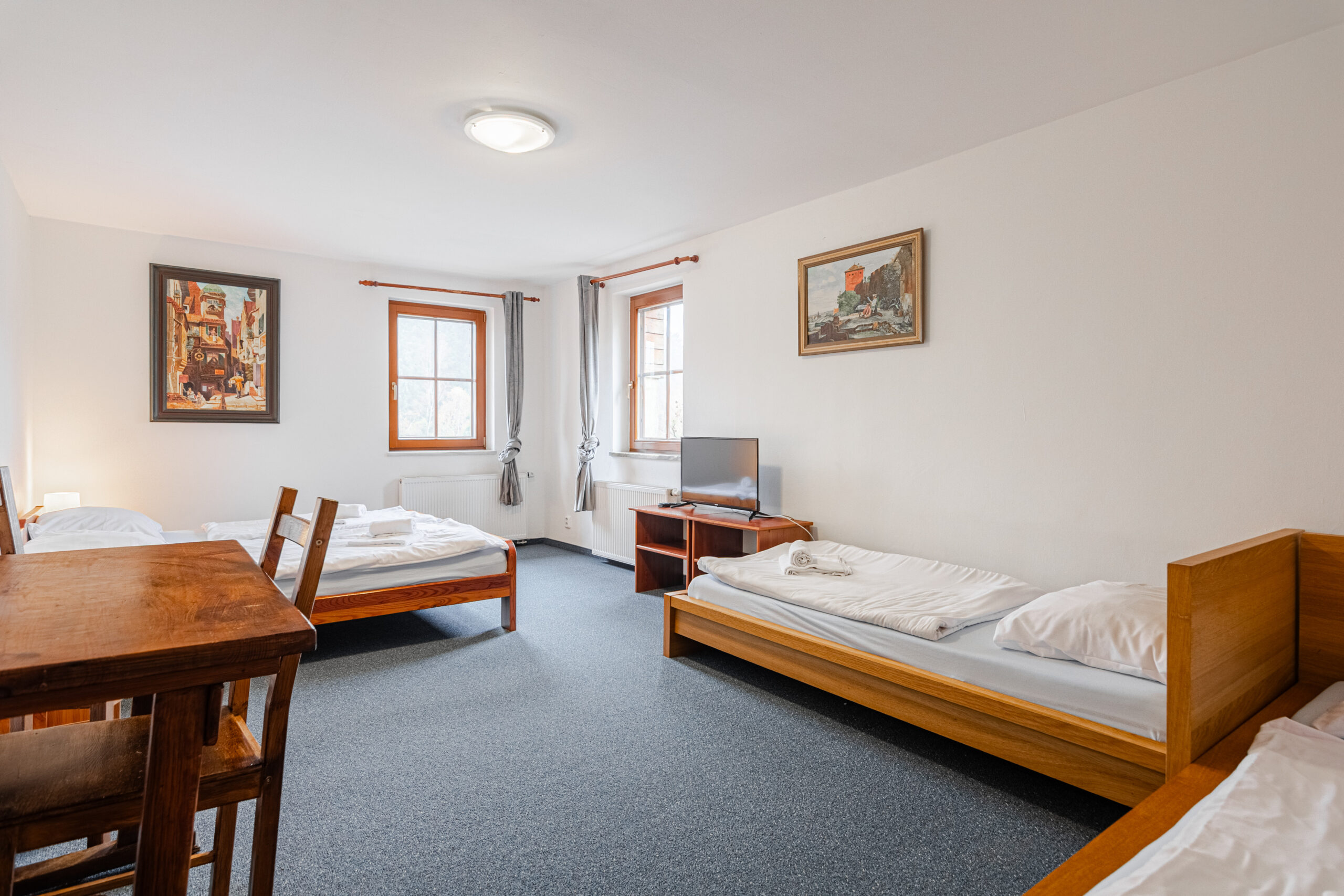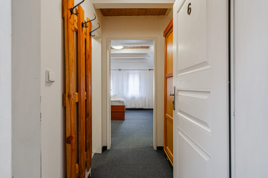 • 2. patro: 1× třílůžkový pokoj a 1× čtyřlůžkový apartmán se dvěma samostatnými ložnicemi