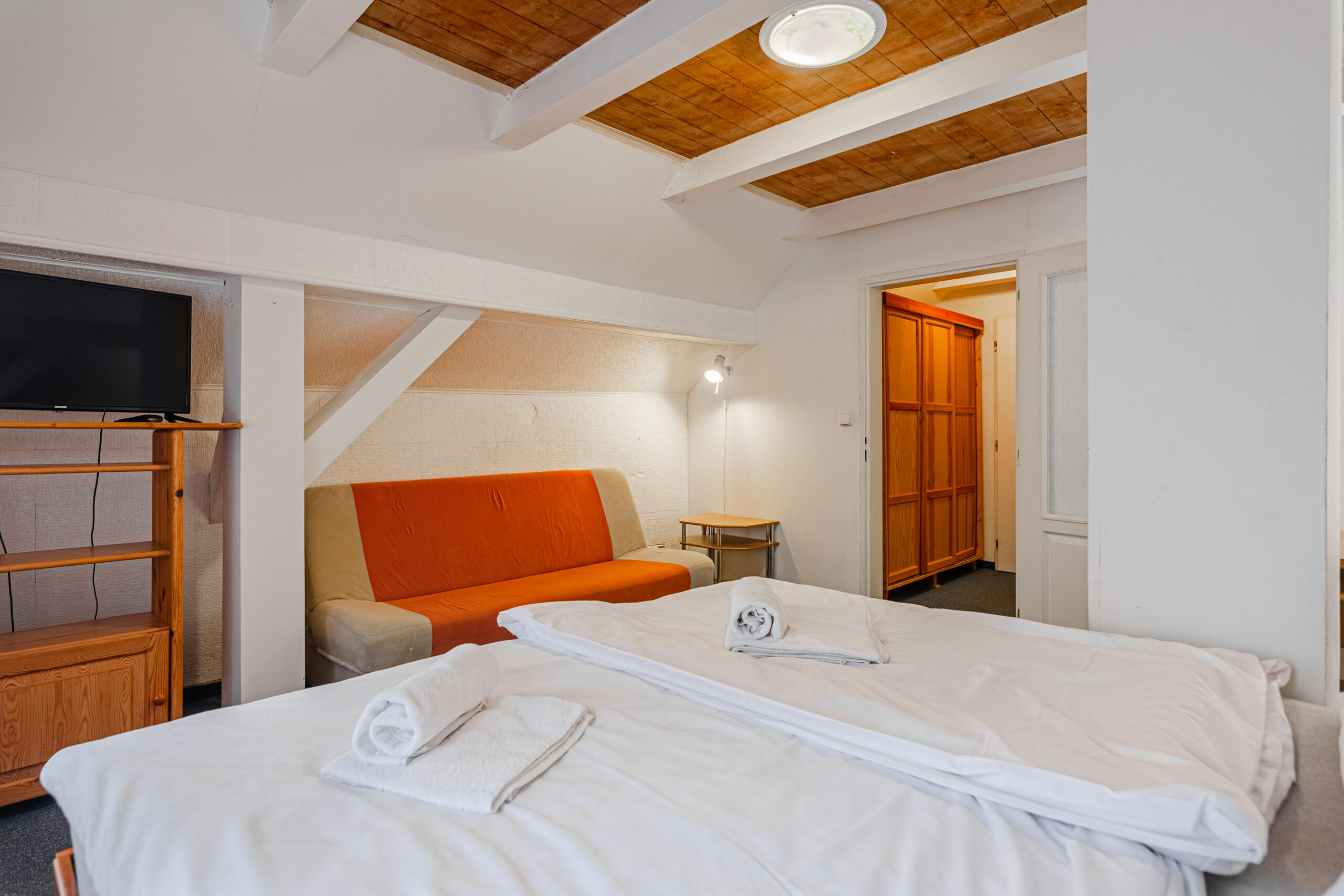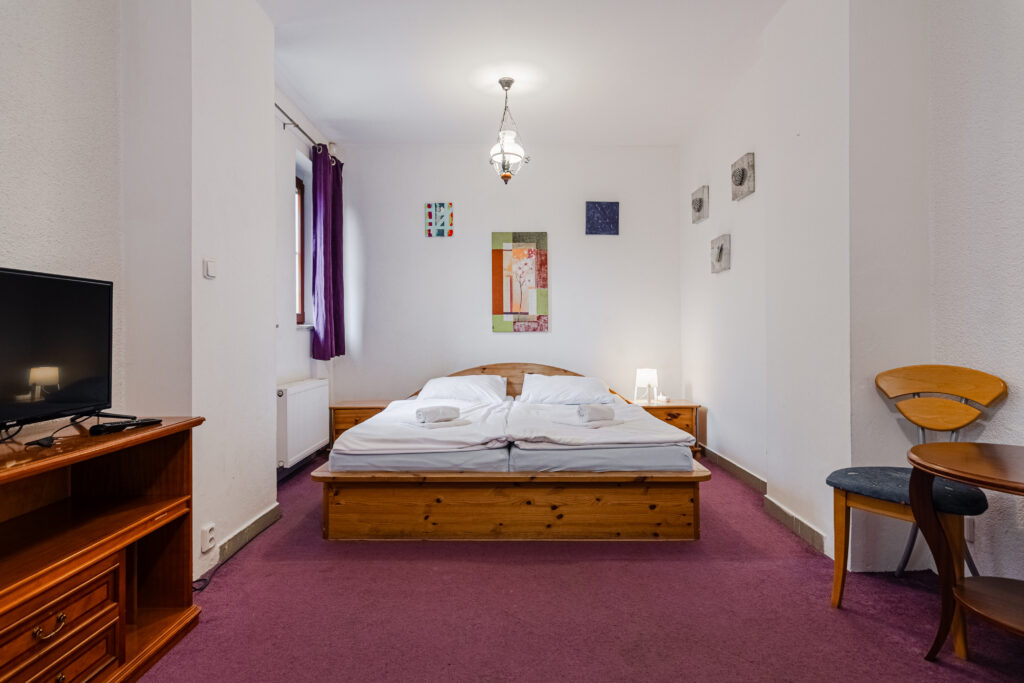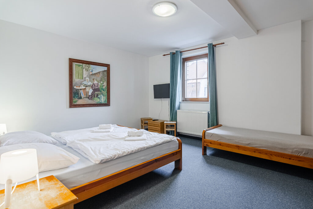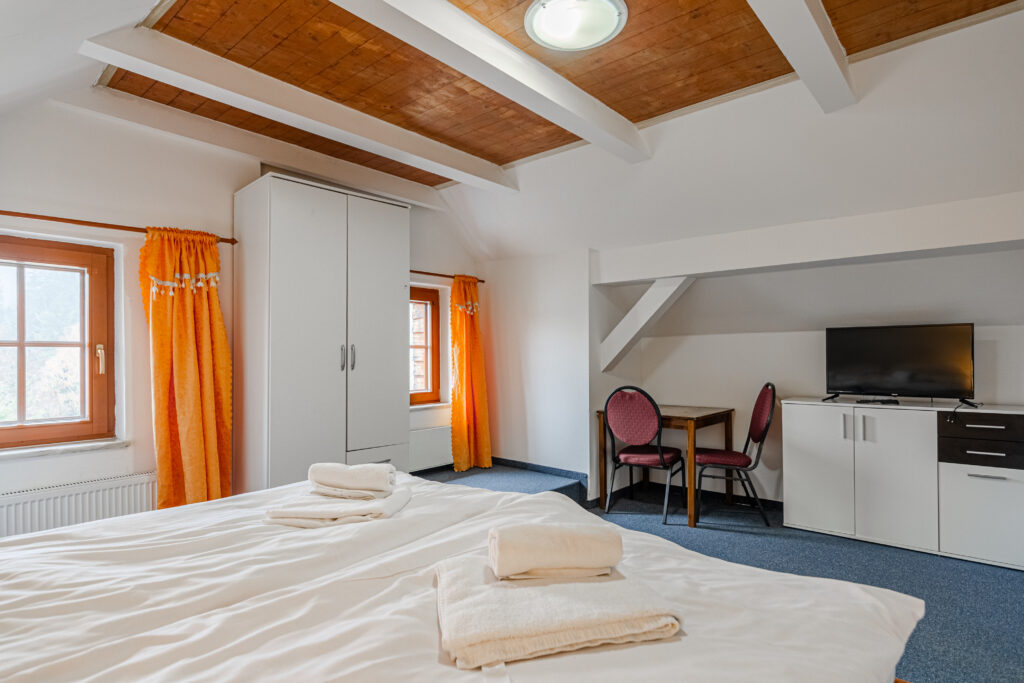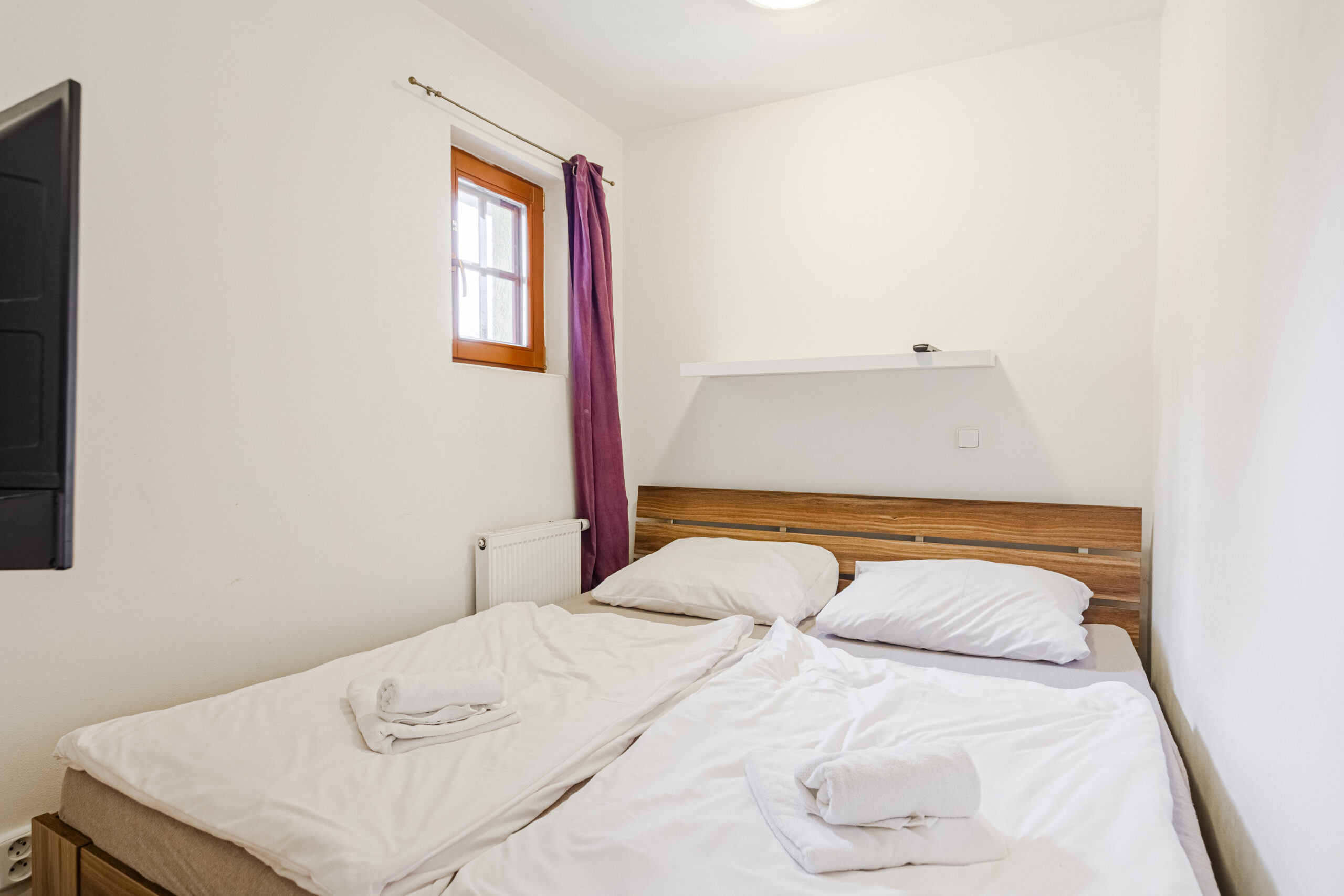 • 2. patro: 1× třílůžkový pokoj a 1× čtyřlůžkový apartmán se dvěma samostatnými ložnicemi