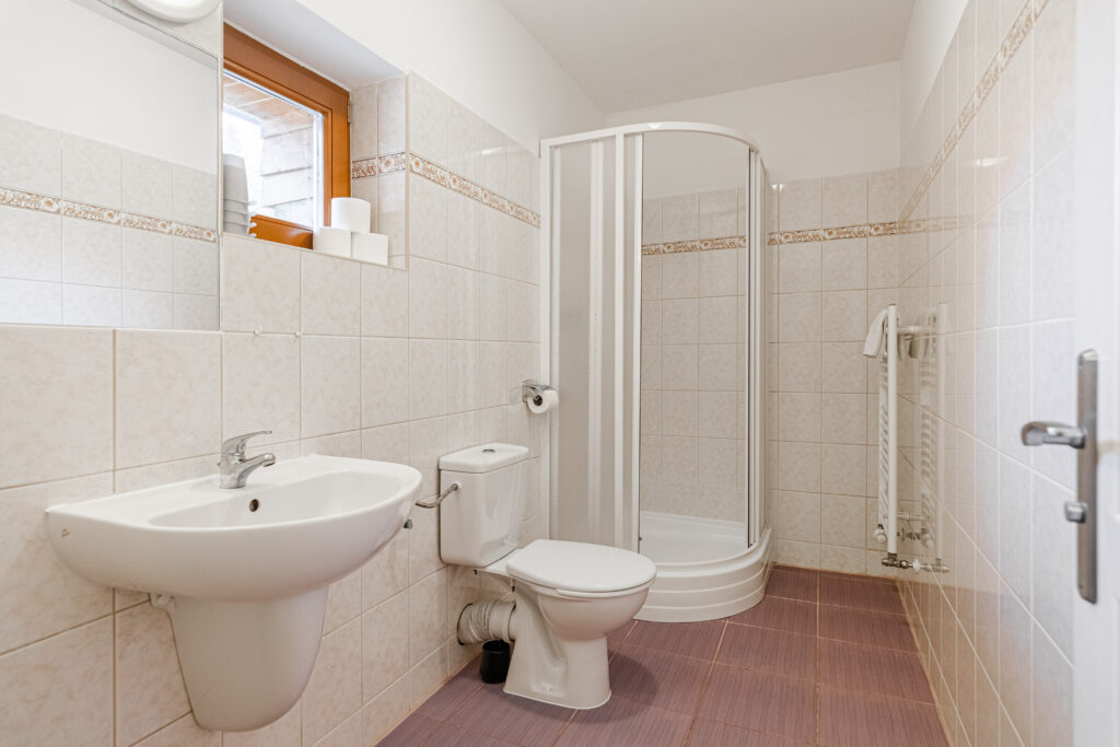 - Každý pokoj má vlastní koupelnu s toaletou, televizi a dostatek soukromí.