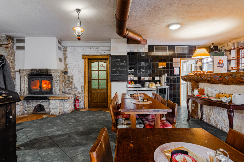 • Dominantou prostoru je krb, který v zimě vytváří příjemnou atmosféru a dodává interiéru kouzlo horské chalupy s výměníkem tepla na společnou chodbu