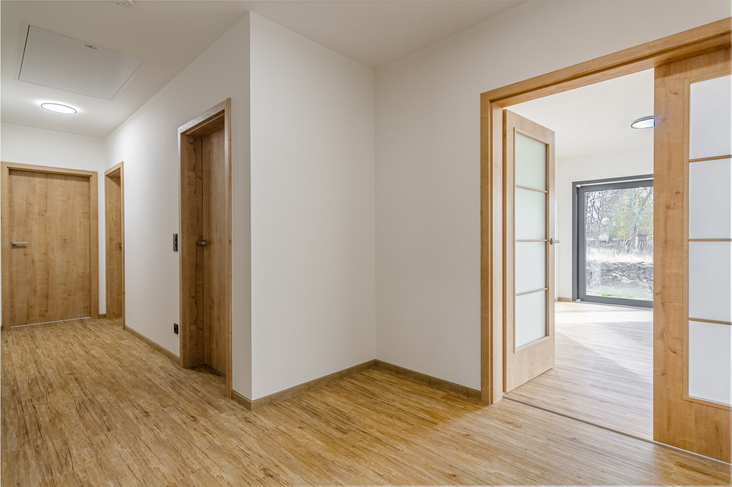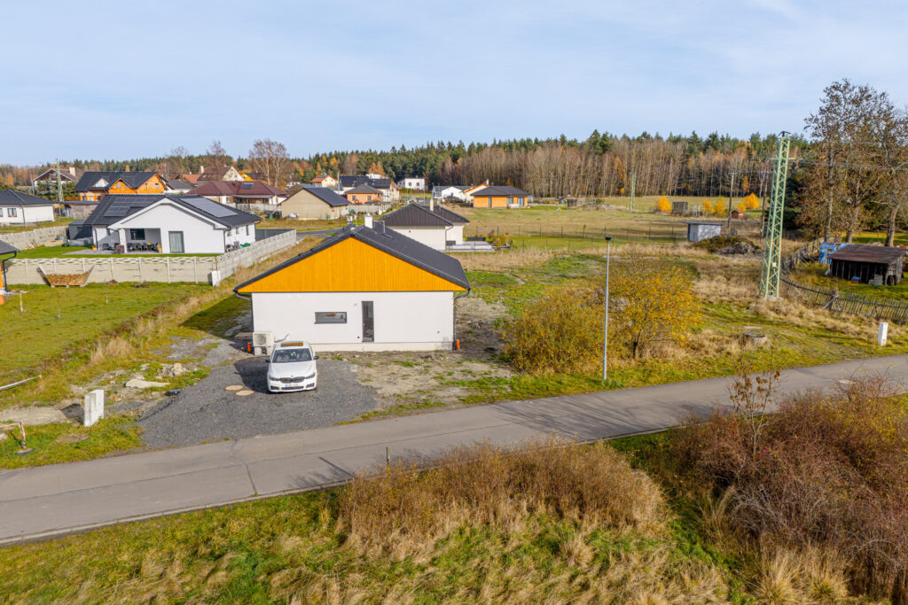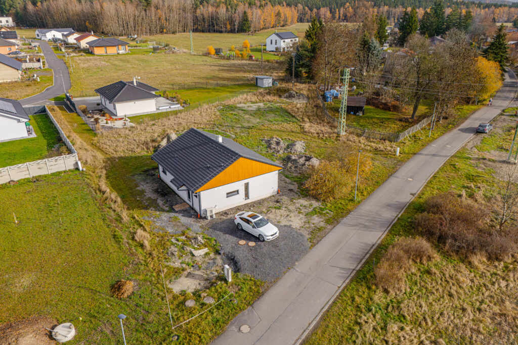 Nabízíme k prodeji zcela nový rodinný dům 4+kk v oblíbené obci Kolová, jen pár minut od Karlových Varů. Dům je nově dokončený, nikdy neobývaný a připravený k okamžitému nastěhování. Stačí jen dokončit kuchyňskou linku, terénní úpravy a oplocení. Dům o dispozici 4+kk s užitnou plochou 90 m² stojí na rovinatém pozemku o rozloze přibližně 1 000 m². Součástí je také terasa o velikosti 14,5 m², kterou je potřeba dokončit a parkování je možné přímo na vlastním pozemku. Stavba byla dokončena v roce 2025. Dispozičně je dům řešen velmi prakticky. Nachází se zde zádveří o výměře 5 m², chodba o velikosti 11 m², samostatné WC o rozloze 2,30 m² a koupelna s dalším WC o velikosti 6 m². Ložnice má 12 m², první pokoj 10 m² a druhý pokoj 9 m². Z obou pokojů je přímý vstup na terasu. Dominantou domu je prostorný obývací pokoj o výměře 24,5 m², na který navazuje kuchyně o velikosti 6,5 m², která je připravená k dokončení podle představ nového majitele. V zadní části domu se nachází technická místnost o rozloze 3,5 m², kde je umístěn bojler a příprava pro další technologie. Mezi hlavní výhody domu patří to, že se jedná o zcela novou stavbu od českého výrobce, která nabízí kvalitní a úsporné bydlení. Interiér je proveden v nadstandardu – najdete zde vinylové podlahy, antracitové detaily (vypínače, zásuvky, okna). Obývací pokoj doplňuje velké francouzské okno HS – portál s bezbariérovým vstupem na zahradu a současně je v obývacím pokoji možnost instalace krbových kamen. Dům je vybaven trojskly, v každé místnosti klimatizací a podlahovým topením. Kromě toho je zde příprava pro fotovoltaiku, dobíjecí zásuvku pro elektromobil, venkovní žaluzie. Obec Kolová nabízí klidné bydlení obklopené přírodou, přesto se skvělou dostupností do Karlových Varů. V obci je MHD, škola, obchod, pošta, nedaleko se nachází golfové hřiště a celkově jde o ideální místo pro rodiny i ty, kteří hledají klidné, pohodové bydlení v blízkosti města. V případě dotazů, mě neváhejte kontaktovat. Ev. číslo: 32020.